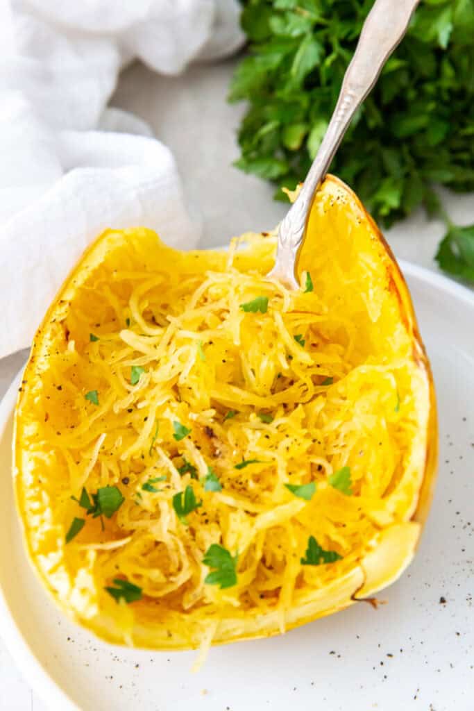 - If you’re learning how to cook spaghetti squash, check doneness by piercing with a fork – it should glide through easily