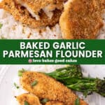 Don’t lose this Baked Garlic Parmesan Flounder recipe! Pin it to your Dinner Recipes, Seafood Recipes, Easy Weeknight Meals, or Baked Fish Dishes board on Pinterest.