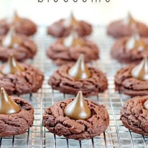 Chocolate Blossoms – a soft chocolaty cookie with a Hershey’s Kiss candy in the middle! #chocolate #cookies #baking
