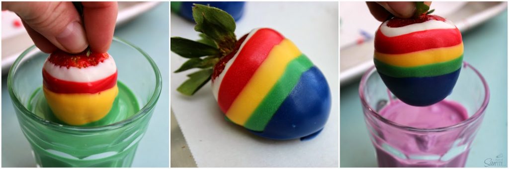 Covered Rainbow Strawberries. My kids were excited, claiming they could have