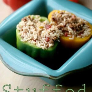 Definitely caught me with the title – had to pop in to see what you stuffed your with. 🙂 I love stuffed peppers, and although I grew up eating mostly stuffed green peppers, I think the red is my favorite now. I'm usually stuffing tomatoes and zucchini at the same time as the peppers. Haven't had them in a while though, so thanks for the reminder! [#TastyTuesdays]