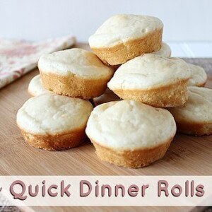 I feel like I should disclose that these Quick Dinner Rolls are not really rolls (at least in my opinion) …. they’re more like a cross between a biscuit and a roll. They’re perfect for those times when you forget to make bread or if you forget to pick any up at the store. They’re super easy to make since you just mix them and bake them. Nothing too complicated. Make them to go with a pot of soup and you’re good to go! 🙂