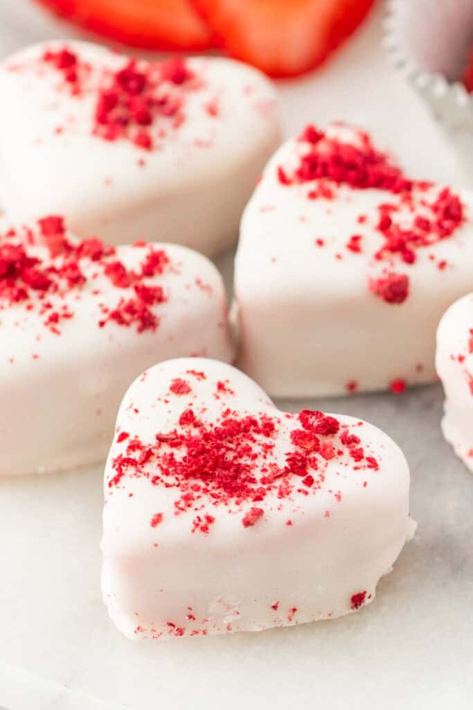 - These heart-shaped treats are soft, creamy, and perfectly sweet with a smooth vanilla coating.